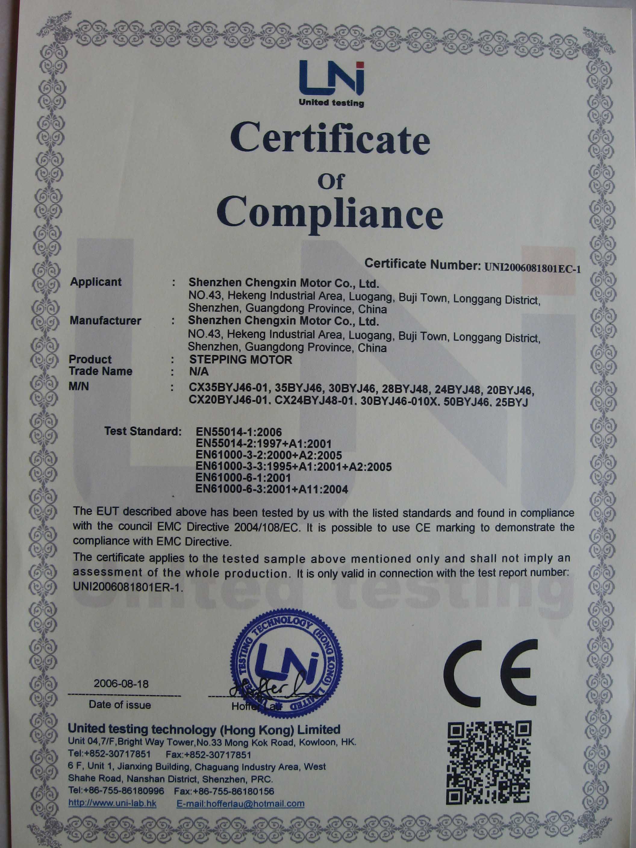 我司產(chǎn)品通過(guò)CE認(rèn)證